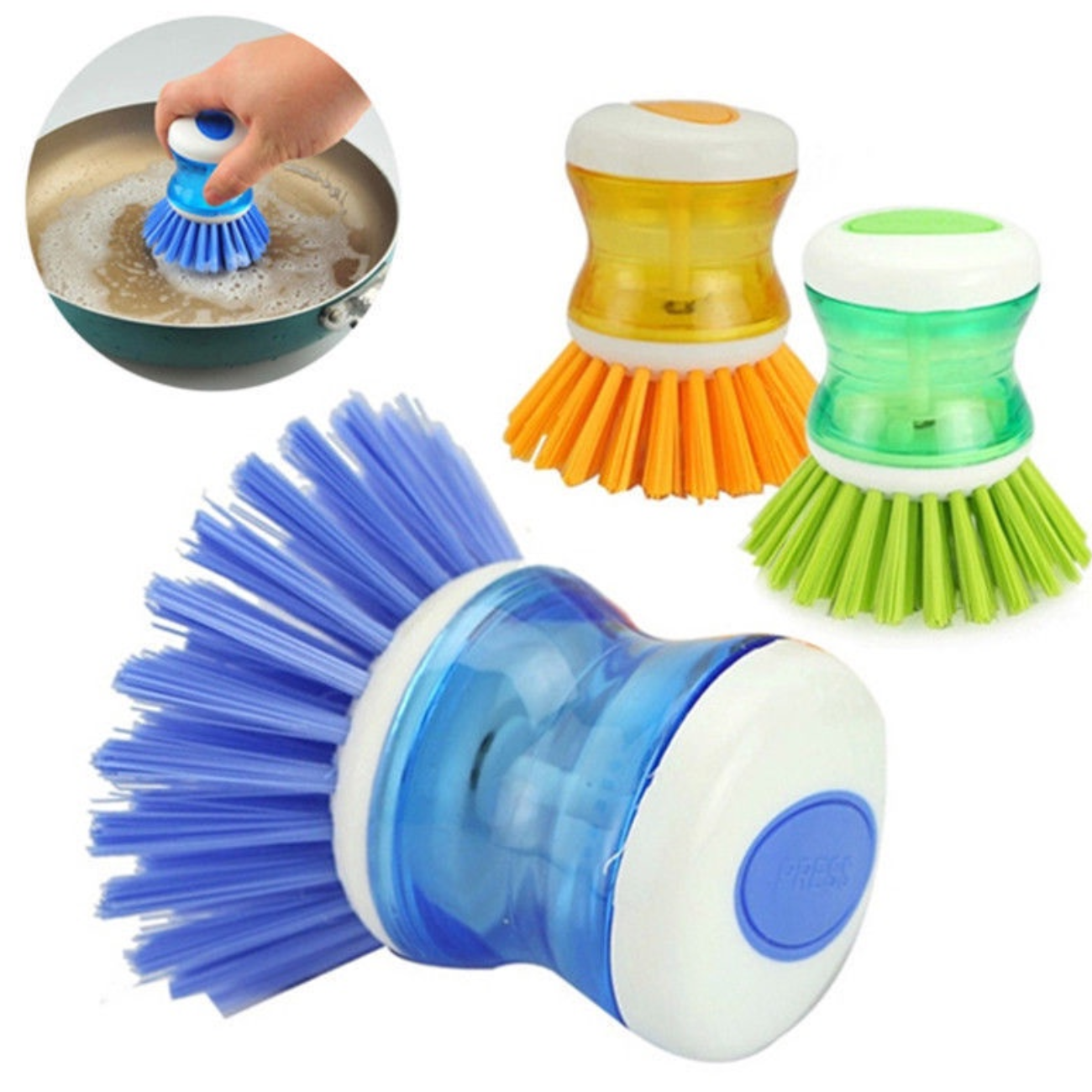 A Escova de limpeza recipiente contem um reservatório para detergente que facilita a limpeza de superfícies e evita o contato das mãos e unhas com os produtos de limpeza.
